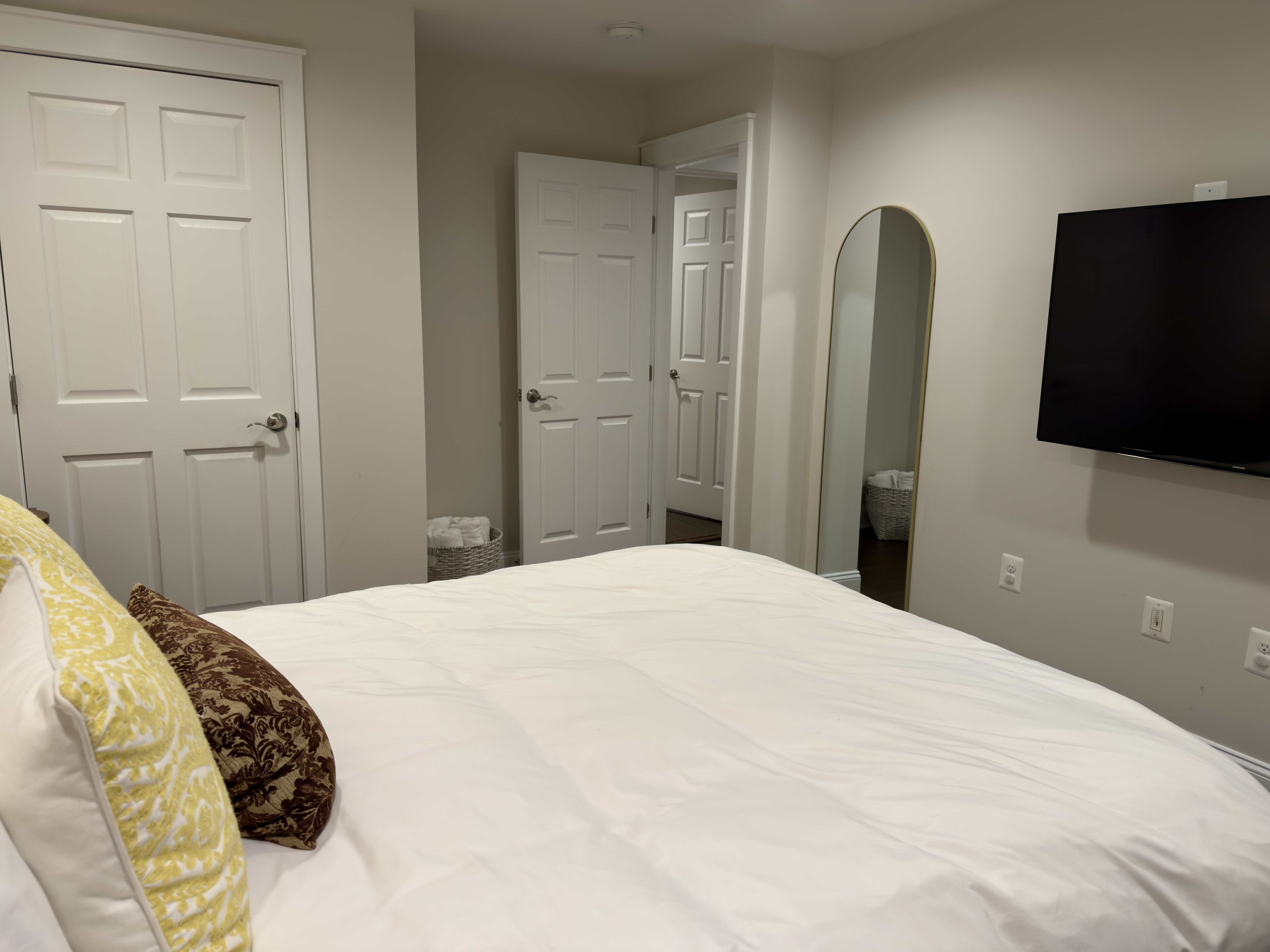 To make your stay even more enjoyable, we provide several complimentary items. Enjoy an ample supply of coffee for the Vertuo Nespresso coffee maker, with a helpful video on how to use the machine available in the Guide Book. A tea kettle and a selection of teas are also provided. Should you need additional coffee pods, they can be purchased at most local grocery stores, including Giant, which is conveniently located about a mile away. We also supply bath soap, shampoo, conditioner, and black makeup towels (please avoid using the white towels for face cleaning). Bath towels are located in baskets in each room, with at least four towels provided per room. Each room is equipped with rapid phone chargers, connected to the back of the nightstands, featuring cables with three different connectors.